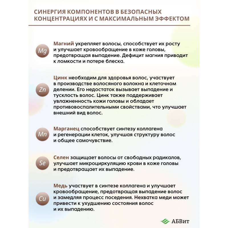 АБВит, ГУСТЫЕ ВОЛОСЫ, МИНЕРАЛЬНЫЙ КОМПЛЕКС ДЛЯ УКРЕПЛЕНИЯ ВОЛОС, 100 МЛ