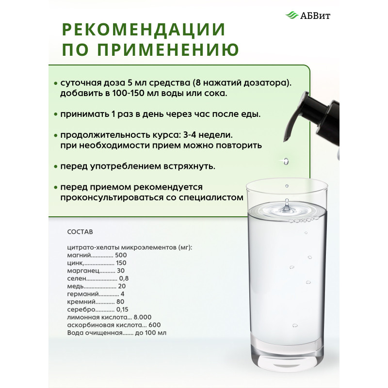 АБВит, ИНСУЛЬТ РЕАБИЛИТАЦИЯ, МИНЕРАЛЬНЫЙ КОМПЛЕКС ДЛЯ ВОССТАНОВЛЕНИЯ ПОСЛЕ ИНСУЛЬТА, 100 МЛ