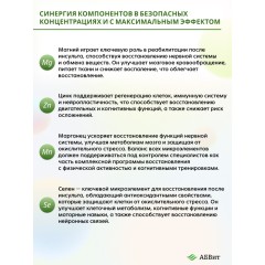 Минеральный комплекс Инсульт Реабилитация от АБВит создан для реабилитации после инсульта играет важную роль в восстановлении здоровья и функциональных возможностей пациента. Целенаправленный прием микроэлементов может значительно ускорить процесс восстановления, улучшая обмен веществ и поддерживая нервные клетки, способствуя улучшению когнитивных функций и укреплению нервной системы.