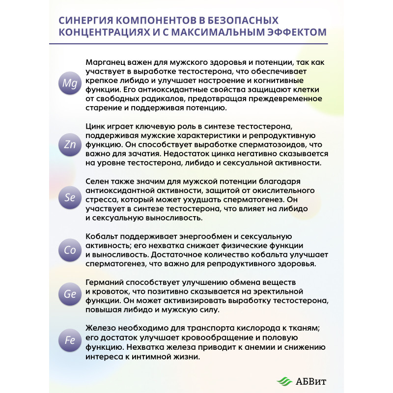 АБВит, МУЖСКАЯ СИЛА, МИНЕРАЛЬНЫЙ КОМПЛЕКС ДЛЯ ПОТЕНЦИИ, 100 МЛ