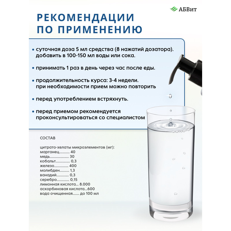 АБВит, СТОП АНЕМИЯ, МИНЕРАЛЬНЫЙ КОМПЛЕКС ДЛЯ ПРОФИЛАКТИКИ АНЕМИИ, 100 МЛ