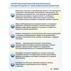 Минеральный комплекс Стоп Анемия от АБВит поможет вам справиться с усталостью, улучшить цвет лица и поддержать энергетический уровень на высоком уровне. Проблемы с гемоглобином могут возникать по различным причинам – от неправильного питания до хронических заболеваний. Регулярный прием Стоп Анемия от АБВит поможет восполнить дефицит необходимых микроэлементов, необходимых для нормального функционирования организма. В их составе вы найдете важные витаминные группы и минералы, которые способствуют образованию красных кровяных клеток и улучшению кислородного обмена!