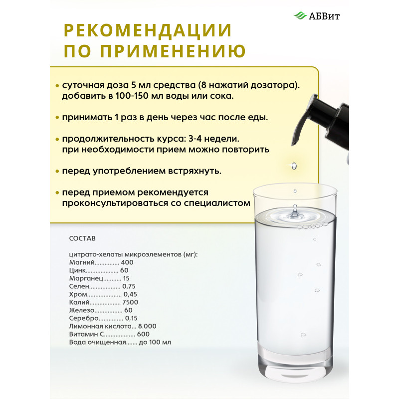 АБВит, ЗДОРОВАЯ ПЕЧЕНЬ, МИНЕРАЛЬНЫЙ КОМПЛЕКС ДЛЯ ДЕТОКСА И ЗАЩИТЫ КЛЕТОК ПЕЧЕНИ, 100 МЛ