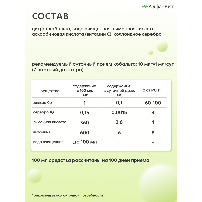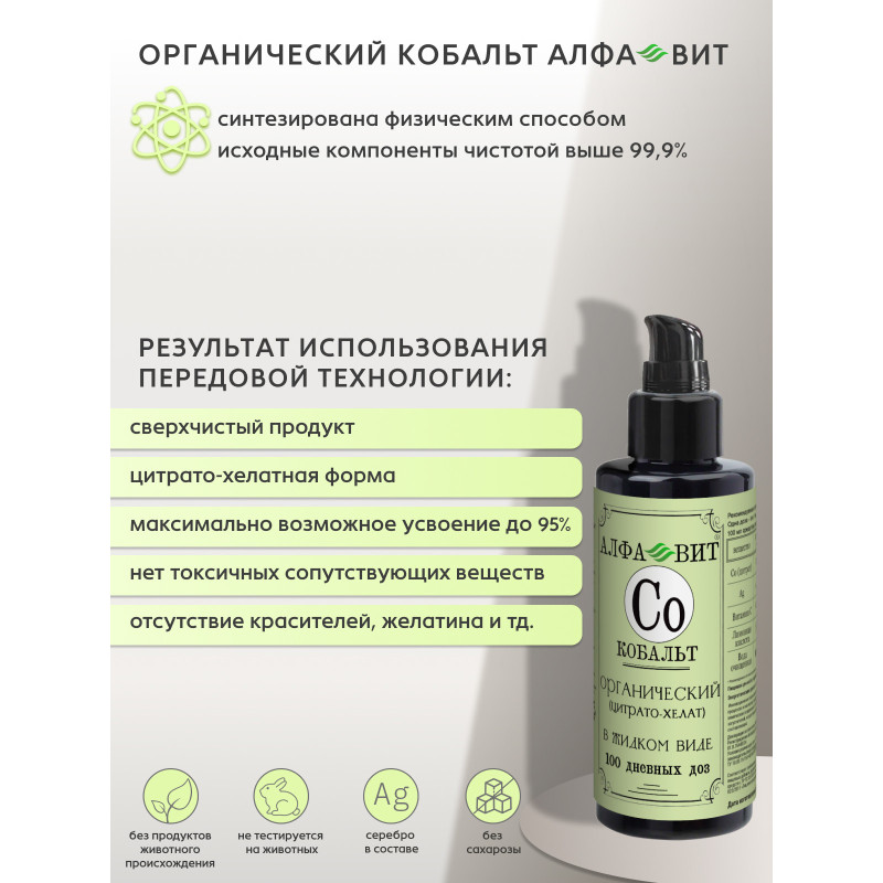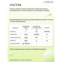АЛФА-ВИТ КОБАЛЬТ ХЕЛАТ ДЛЯ ПАМЯТИ, НЕРВОВ И ЭНЕРГИИ, 100 МЛ