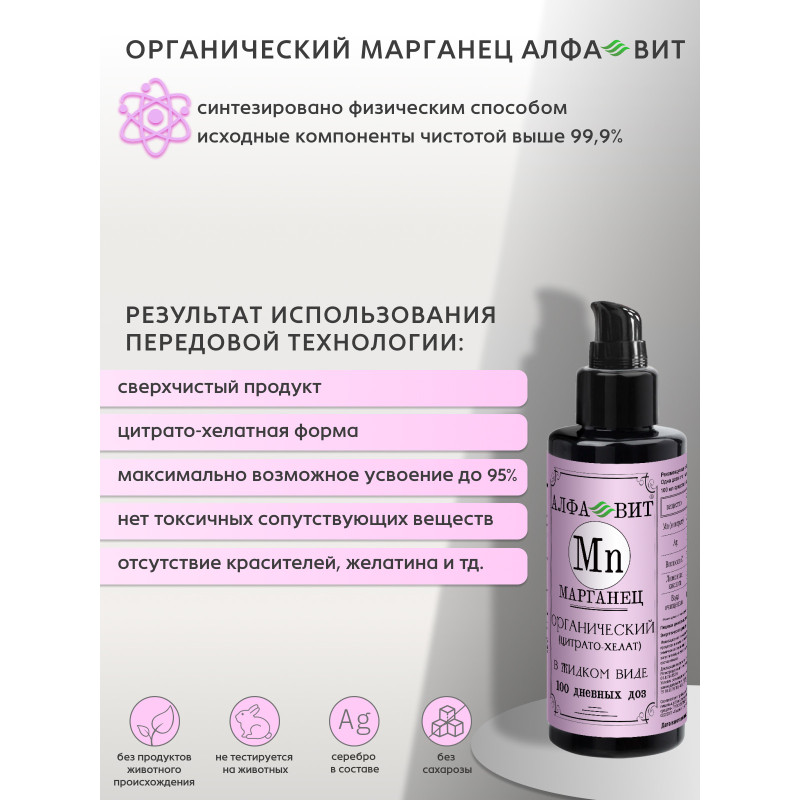 АЛФА-ВИТ МАРГАНЕЦ ХЕЛАТ ДЛЯ КОСТЕЙ, СЕРДЦА И СОСУДОВ, 100 МЛ