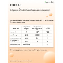 АЛФА-ВИТ МОЛИБДЕН ХЕЛАТ, ВИТАМИНЫ ДЛЯ ИММУНИТЕТА, АНТИОКСИДАНТ ДЛЯ УКРЕПЛЕНИЯ ЗУБОВ, 100 МЛ