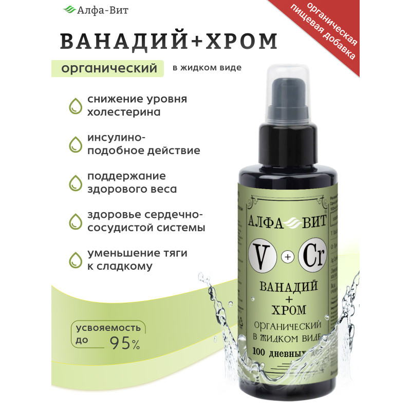 АЛФА-ВИТ ВАНАДИЙ С ХРОМОМ, ПОМОЩЬ ПРИ САХАРНОМ ДИАБЕТЕ, 100 МЛ