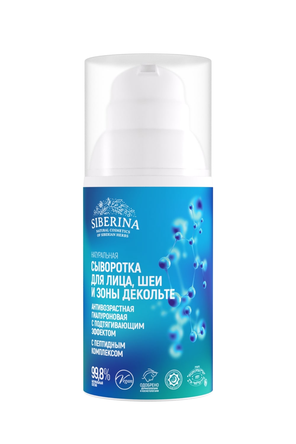 НАТУРАЛЬНАЯ АНТИВОЗРАСТНАЯ ГИАЛУРОНОВАЯ СЫВОРОТКА С ПЕПТИДНЫМ КОМПЛЕКСОМ ДЛЯ ЛИЦА, ШЕИ И ЗОНЫ ДЕКОЛЬТЕ