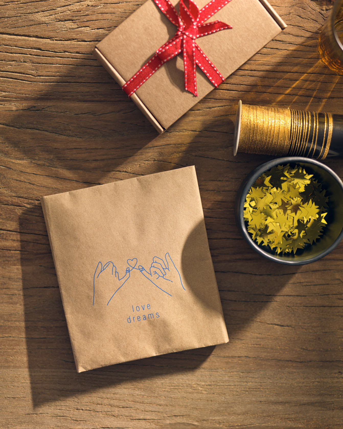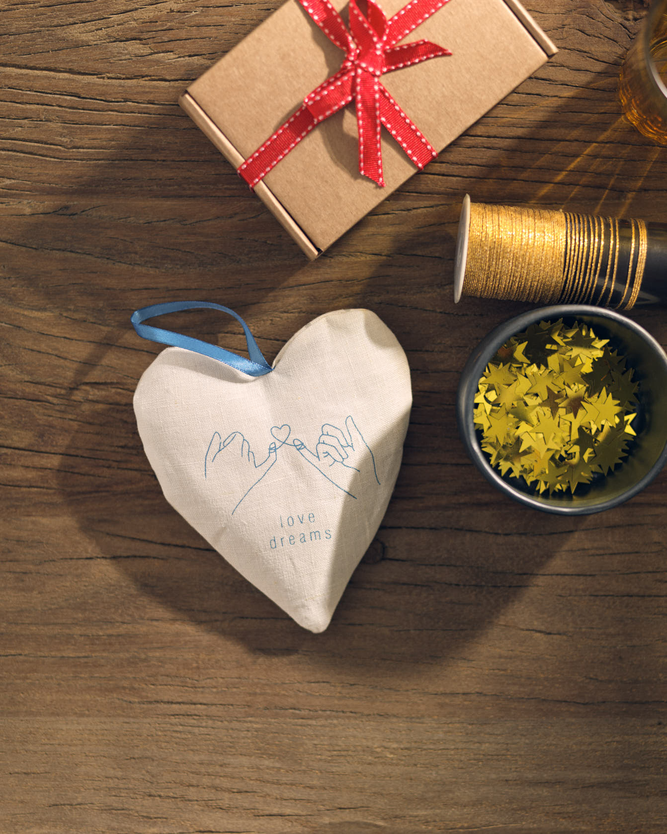 Саше в виде сердца из 100% натурального льна с графикой Love Dreams, наполнено цветами дикорастущей лаванды. Подарочная упаковка из крафта с печатью.