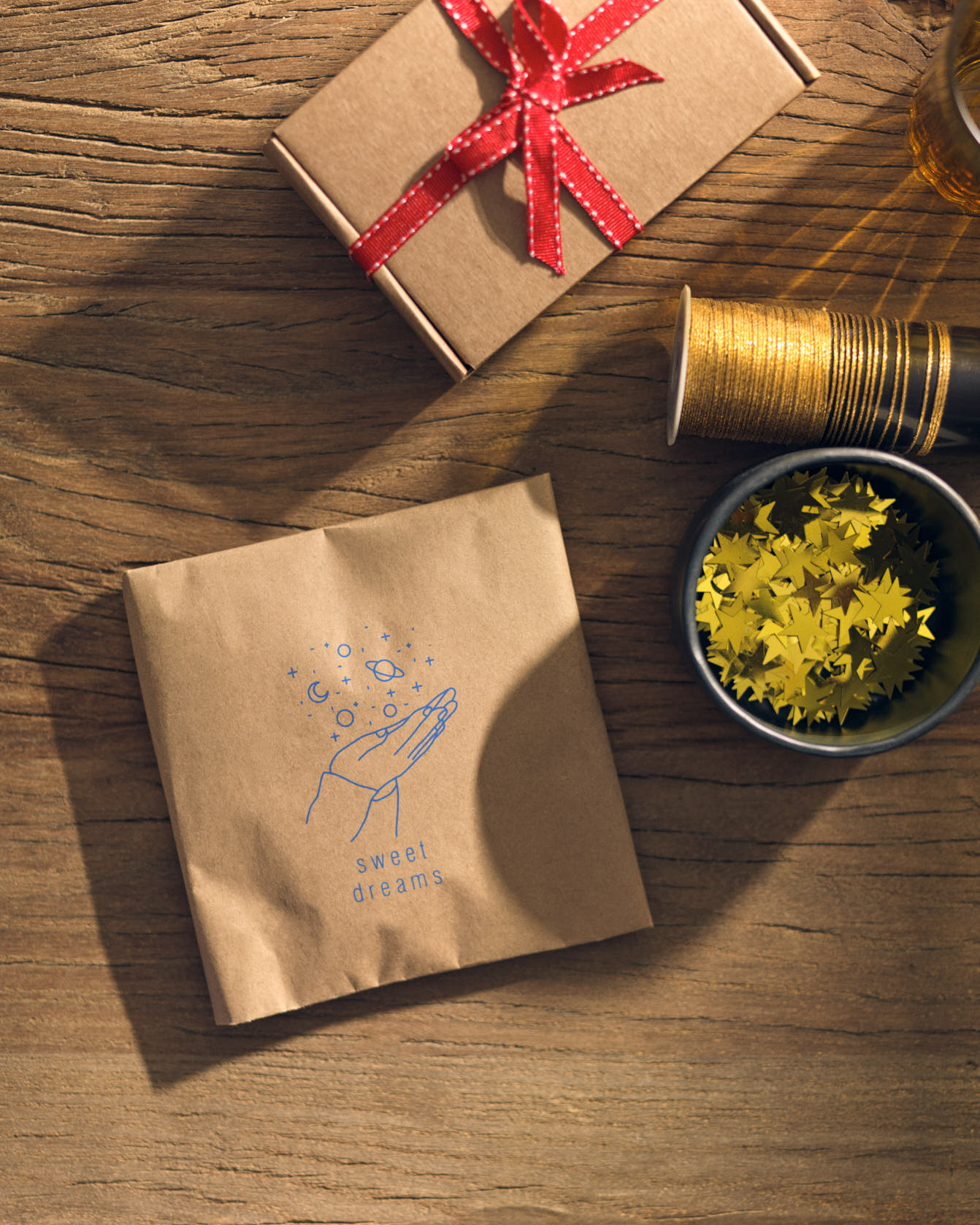 Саше в виде сердца из 100% натурального льна с графикой Sweet Dreams, наполнено цветами дикорастущей лаванды. Подарочная упаковка из крафта с печатью.