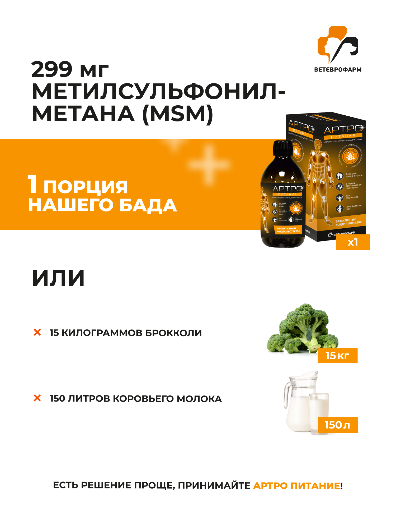 Представляем БАД «Артро-Питание» – ваш надежный помощник для здоровья суставов! Эта биологически активная добавка к пище создана для тех, кто заботится о своих суставах и хочет поддерживать их здоровье на высоком уровне. «Артро-Питание» – это мощный комплекс, разработанный ветеринарными врачами с большим опытом, который сочетает в себе все необходимые компоненты для восстановления и улучшения состояния суставов у людей.