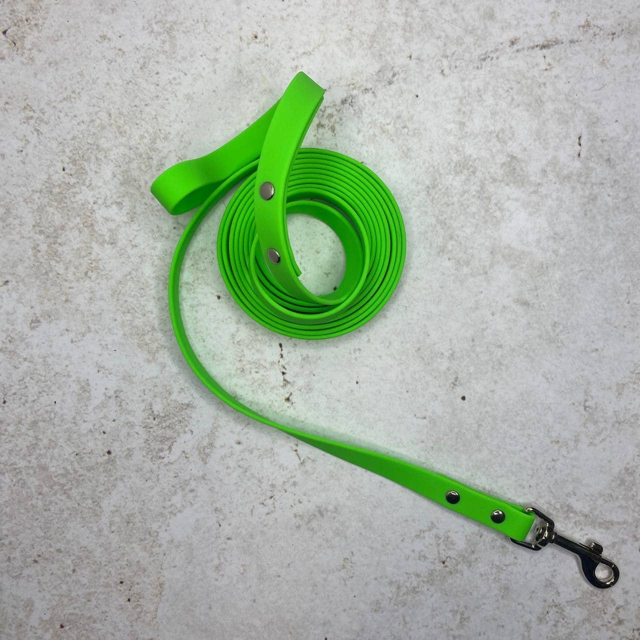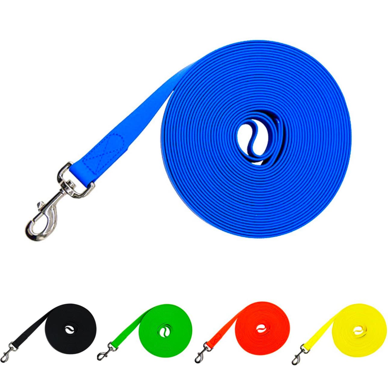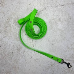 Водонепроницаемый поводок из биотана не боится влаги и грязи, способен выдерживать большие нагрузки и прекрасно подходит для бега или плавания, он не растягивается и не теряет форму при ежедневной эксплуатации. Легко моется - после прогулки в дождливый день его достаточно протереть влажной салфеткой, а при сильном загрязнении достаточно использовать губку с моющим средством. Строчки на пвх стропе прошиты усиленным Х-образным швом армированными нитями, а карабин изготовлен из высокопрочной нержавеющей стали. Предназначен для всех пород собак до 50 кг.