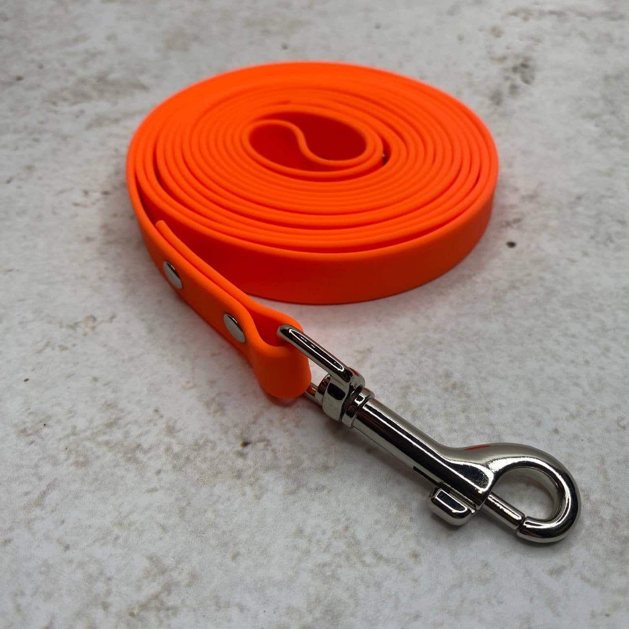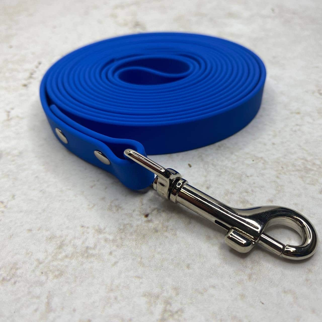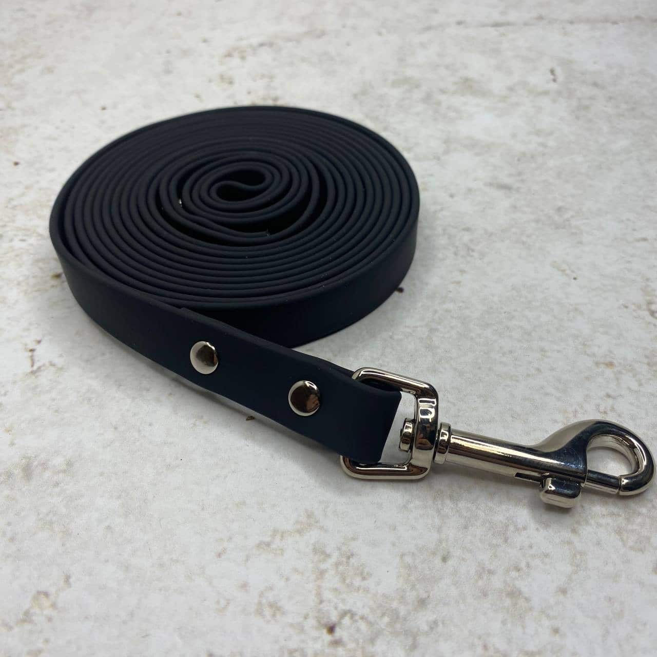 Водонепроницаемый поводок из биотана не боится влаги и грязи, способен выдерживать большие нагрузки и прекрасно подходит для бега или плавания, он не растягивается и не теряет форму при ежедневной эксплуатации. Легко моется - после прогулки в дождливый день его достаточно протереть влажной салфеткой, а при сильном загрязнении достаточно использовать губку с моющим средством. Строчки на пвх стропе прошиты усиленным Х-образным швом армированными нитями, а карабин изготовлен из высокопрочной нержавеющей стали. Предназначен для всех пород собак до 50 кг.