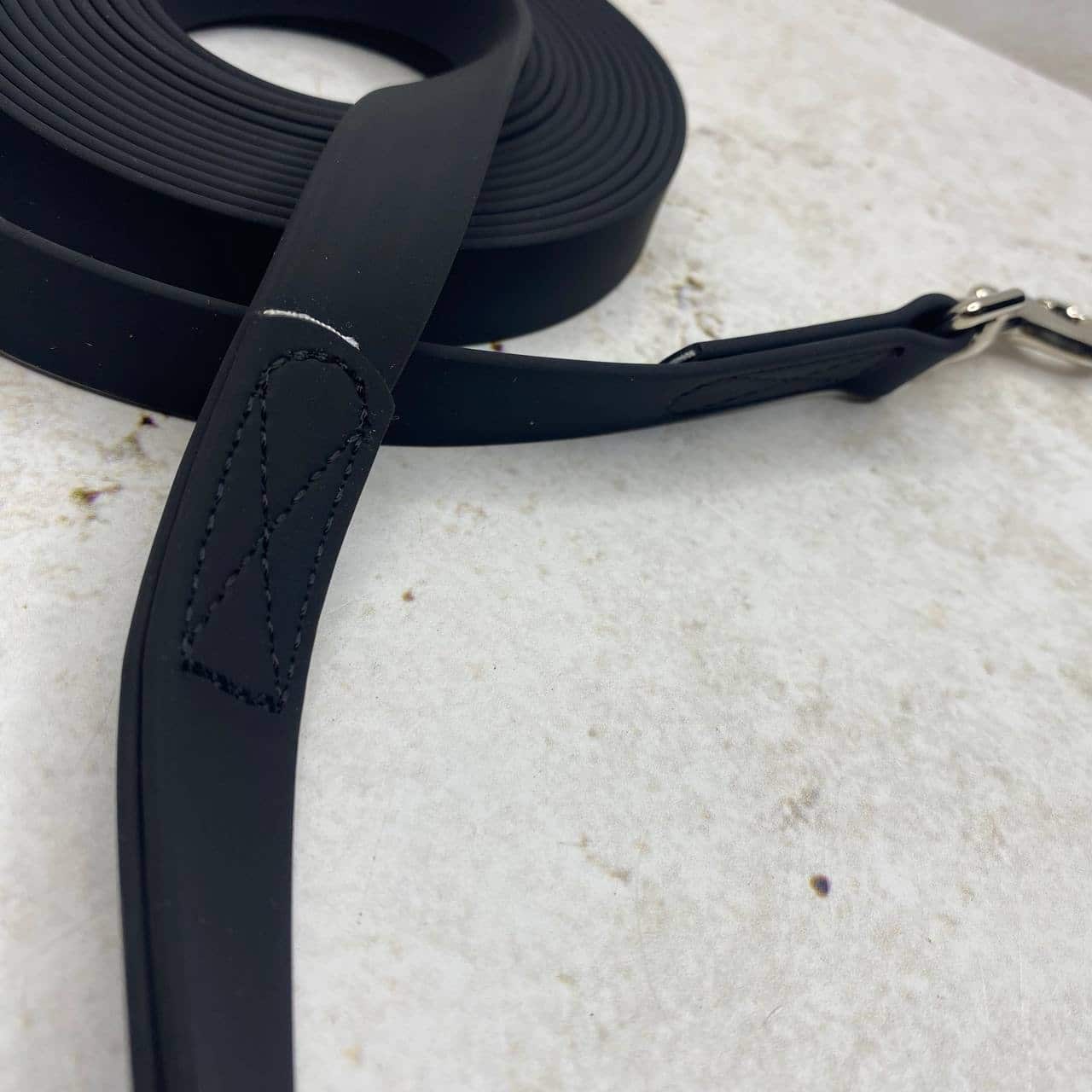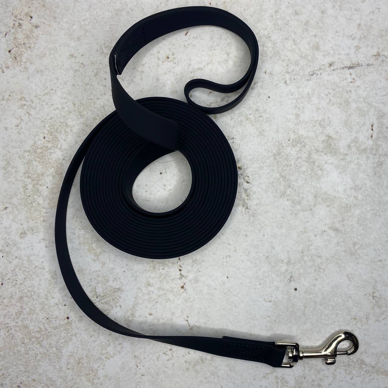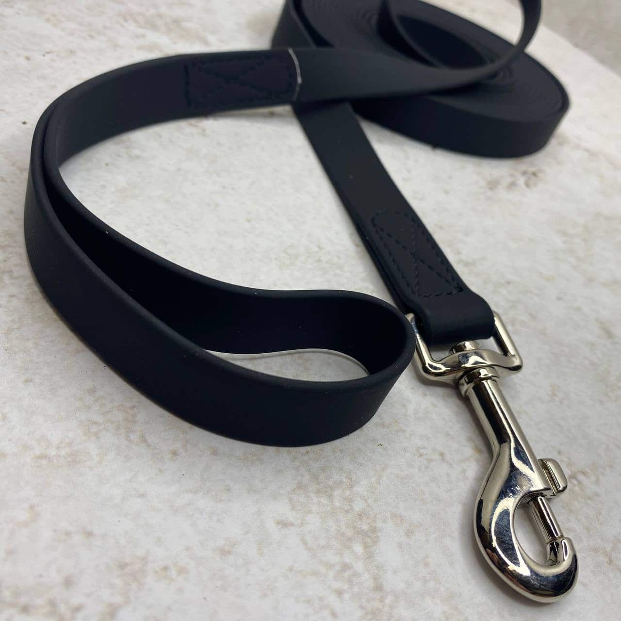 Водонепроницаемый поводок из биотана не боится влаги и грязи, способен выдерживать большие нагрузки и прекрасно подходит для бега или плавания, он не растягивается и не теряет форму при ежедневной эксплуатации. Легко моется - после прогулки в дождливый день его достаточно протереть влажной салфеткой, а при сильном загрязнении достаточно использовать губку с моющим средством. Строчки на пвх стропе прошиты усиленным Х-образным швом армированными нитями, а карабин изготовлен из высокопрочной нержавеющей стали. Предназначен для всех пород собак до 50 кг. Максимальная нагрузка в рывке 192 кг. Прорезиненный поводок не скользит и не режет руку. А вращающийся на 360° карабин не спутывает поводок. Для крупных собак будет супер легким. Будьте уверены он не потрескается на морозе, сохранит эластичность и не выцветет. Подойдет для мелких, средних и крупных собак. Дополните поводок ошейником и шлейкой из этой же коллекции в нашем магазине "Лакомств для собак от Марселя»