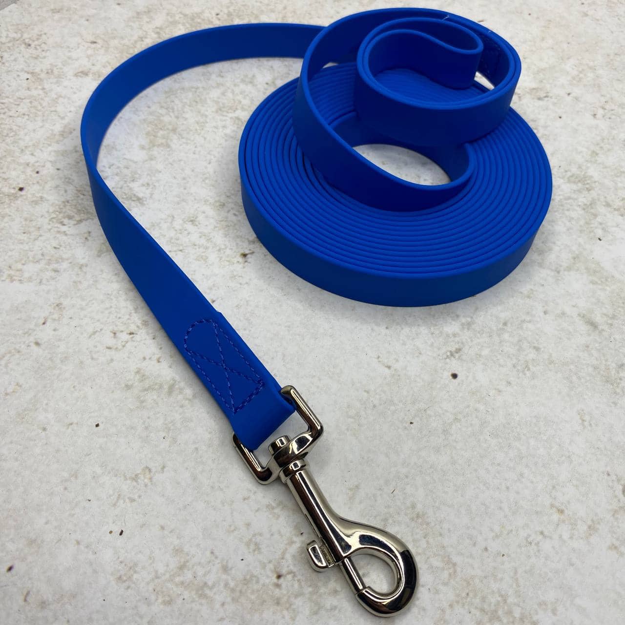 Водонепроницаемый поводок из биотана не боится влаги и грязи, способен выдерживать большие нагрузки и прекрасно подходит для бега или плавания, он не растягивается и не теряет форму при ежедневной эксплуатации. Легко моется - после прогулки в дождливый день его достаточно протереть влажной салфеткой, а при сильном загрязнении достаточно использовать губку с моющим средством. Строчки на пвх стропе прошиты усиленным Х-образным швом армированными нитями, а карабин изготовлен из высокопрочной нержавеющей стали. Предназначен для всех пород собак до 50 кг. Максимальная нагрузка в рывке 192 кг. Прорезиненный поводок не скользит и не режет руку. А вращающийся на 360° карабин не спутывает поводок. Для крупных собак будет супер легким. Будьте уверены он не потрескается на морозе, сохранит эластичность и не выцветет. Подойдет для мелких, средних и крупных собак. Дополните поводок ошейником и шлейкой из этой же коллекции в нашем магазине "Лакомств для собак от Марселя»