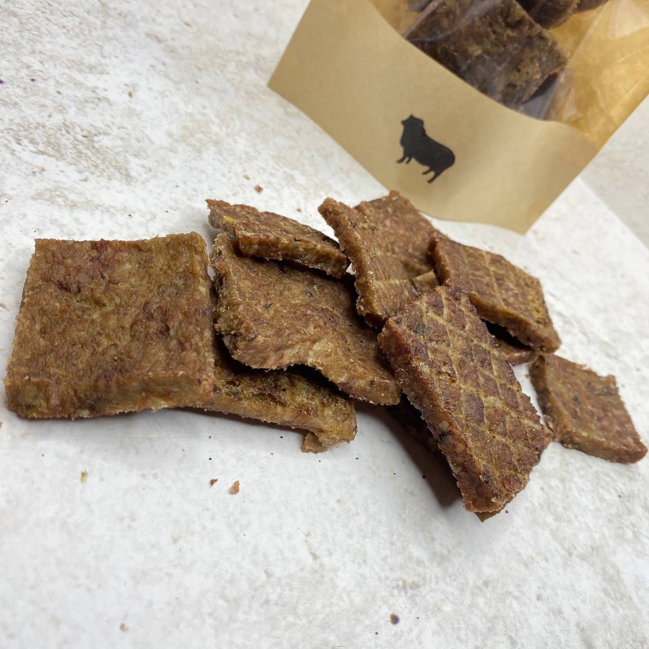 Чипсы из бараньего корня с говяжьим фаршем из ракушек