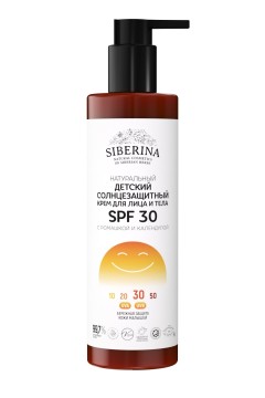 Детский солнцезащитный крем с SPF 30 предназначен специально для нежной и чувствительной кожи малышей. Он содержит только безопасные гипоаллергенные компоненты и обеспечивает надежную защиту детской кожи от неблагоприятного воздействия ультрафиолетовых лучей. С таким эффективным и натуральным средством вы можете быть спокойны за своего ребенка, когда он гуляет, играет на свежем воздухе и купается. Благодаря легкой текстуре средство легко распределяется, не вызывая липкости и жирного блеска. В составе нет наночастиц, поэтому при нанесении крем может оставлять на коже легкий белый след. ОКСИД ЦИНКА является эффективным физическим ультрафиолетовым фильтром, создаёт на поверхности кожи невидимый барьер, который отражает UVA/UVВ-лучи. МАСЛО КОКОСА хорошо увлажняет и смягчает кожу. ЭКСТРАКТЫ РОМАШКИ, КАЛЕНДУЛЫ И БИСАБОЛОЛ уменьшают покраснение и раздражение, смягчают и успокаивают чувствительную кожу. ВИТАМИН Е оказывает антиоксидантный эффект и укрепляет барьерную функцию кожи. ОБЪЕМ: 200 ± 5 мл. СРОК ГОДНОСТИ: 18 месяцев, после вскрытия хранить 3 месяца.СОСТАВ: Aqua (вода дистиллированная), Zinc oxide (оксид цинка), Coco-caprylate/caprate (коко-каприлат/капрат), Macadamia integrifolia seed oil (масло макадамии), Polyglyceryl-4 Olivate/Polyricinoleate (полиглицерил-4 оливат/полирицинолеат), Glycerin (глицерин), Coconut oil (масло кокосовое), Magnesium sulfate (сульфат магния), Stearic acid (стеариновая кислота), Benzyl alcohol (бензиловый спирт), Tocopheryl acetate (витамин Е), Xanthan gum (ксантановая камедь), Bisabolol (бисаболол), Panthenol (Д-пантенол), Calendula officinalis flower extract (экстракт календулы), Panax ginseng extract (экстракт женьшеня), Chamomilla recutita (matricaria) flower extract (экстракт ромашки), Ethylhexylglycerin (этилгексилглицерин).СПОСОБ ПРИМЕНЕНИЯ: Перед первым использованием встряхнуть и медленно нажать на дозатор 15-20 раз. Легкими массажными движениями нанести крем на кожу лица за 15-20 минут до выхода на солнце, излишки убрать салфеткой.