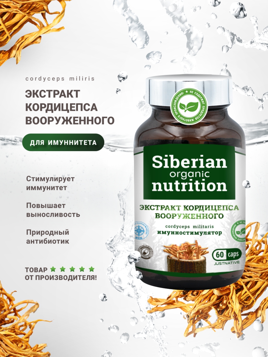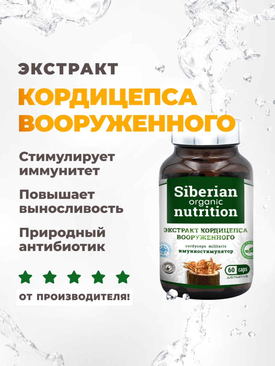 Кордицепс вооруженный - это уникальный гриб, обладающий мощными свойствами для поддержания здоровья. Кордицепс капсулы содержат в себе полезные вещества, которые стимулируют иммунитет, увеличивают выносливость и улучшают общий тонус организма