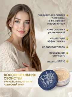 Благодаря своей уникальной формуле, пудра идеально подходит для ухода за кожей, позволяя ей дышать. Минеральные компоненты в составе обеспечивают надежную защиту, помогая предотвратить появление прыщей и других несовершенств. Продукт также обладает уходовыми свойствами, что делает его отличным выбором для девушек и женщин, которые заботятся о состоянии своей кожи.