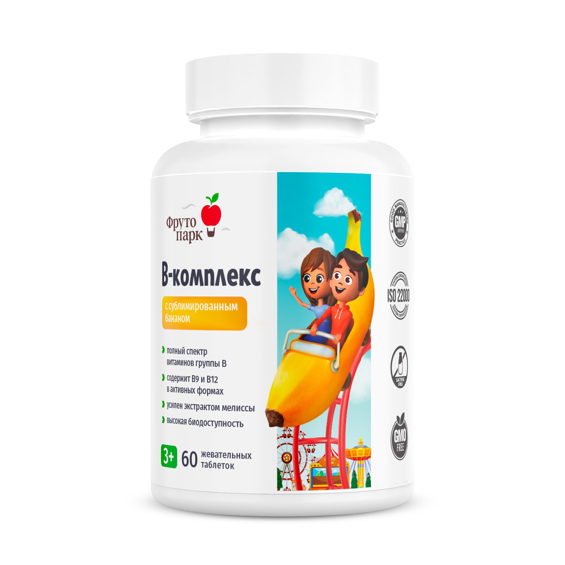 Фруто парк, B-комплекс с сублимированным бананом, жевательные таблетки, 60 шт.