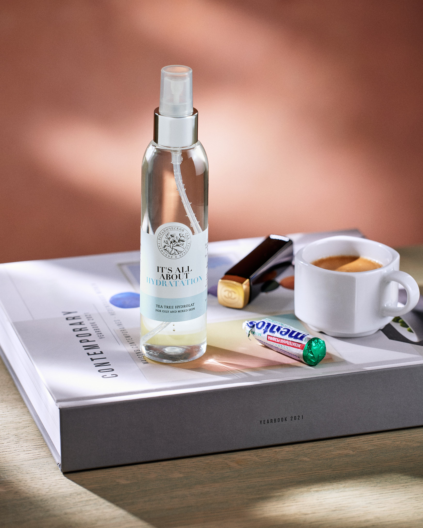 Основу для последующих этапов ухода: После распыления гидролата нанесите подходящие вам средства ухода, например масло "Семена мака и Чайное дерево" или "Зверобой и Мята". Гидролат усилит их эффективность, помогая активным компонентам глубже проникнуть в кожу.
