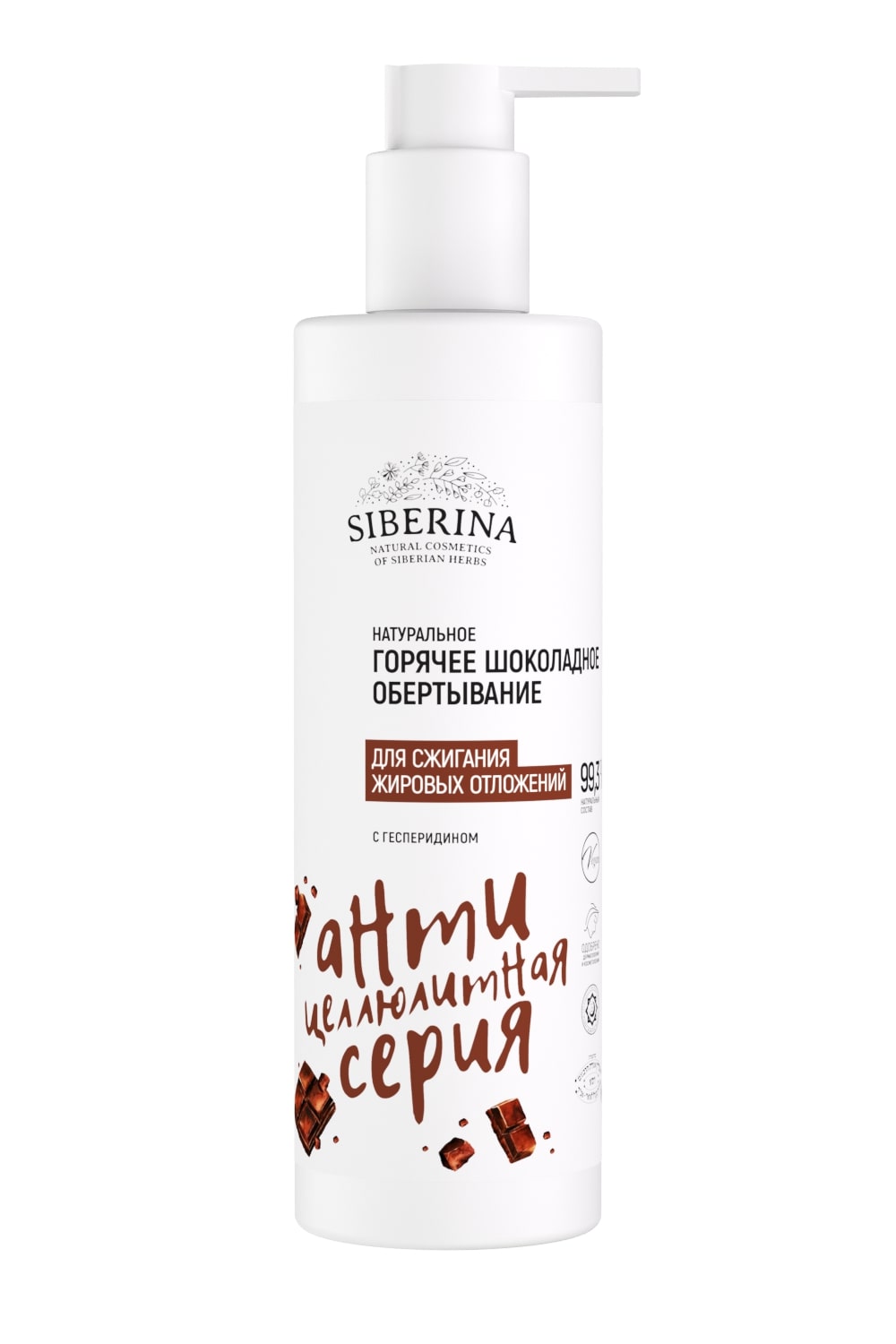 Шоколадное обертывание с термоэффектом - популярная спа-процедура, очень эффективная для похудения и борьбы с целлюлитом. С натуральной смесью для обертывания от SIBERINA вы легко сможете повторить эту салонную процедуру у себя дома. Средство оказывает тонизирующее, питательное и подтягивающее действие, превосходно борется со стрессом и усталостью, а сладкий дразнящий аромат шоколада создает прекрасное настроение. Вас ждет полный релакс во время обертывания и красивая, упругая кожа после него!