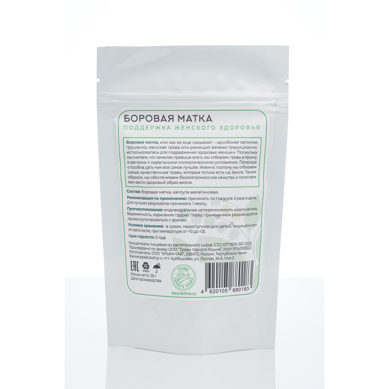 Капсулы боровой матки представлены в оригинальной форме, что облегчает их прием. Они содержат сушеную боровую матку в натуральной органической оболочке, что позволяет сохранить все лечебные свойства. Корень и листья боровой матки давно применяются в народной медицине Алтая. Они входят в состав фиточая и фитосборов, используемых для лечения различных заболеваний. Считается диетической добавкой, которая помогает восстановить органы малого таза, улучшить функцию кишечника, желудочно-кишечного тракта, почек и мочевой системы. Препарат помогает улучшить работу женской репродуктивной системы, восстановить гормональный баланс, снизить риск заболеваний груди и уменьшить отеки. Экстракт поможет укрепить иммунитет, повысить уровень энергии, повысить зачатие и подготовить организм к беременности. Природное лекарство является отличным решением для женщин, стремящихся поддерживать и улучшать свое здоровье.