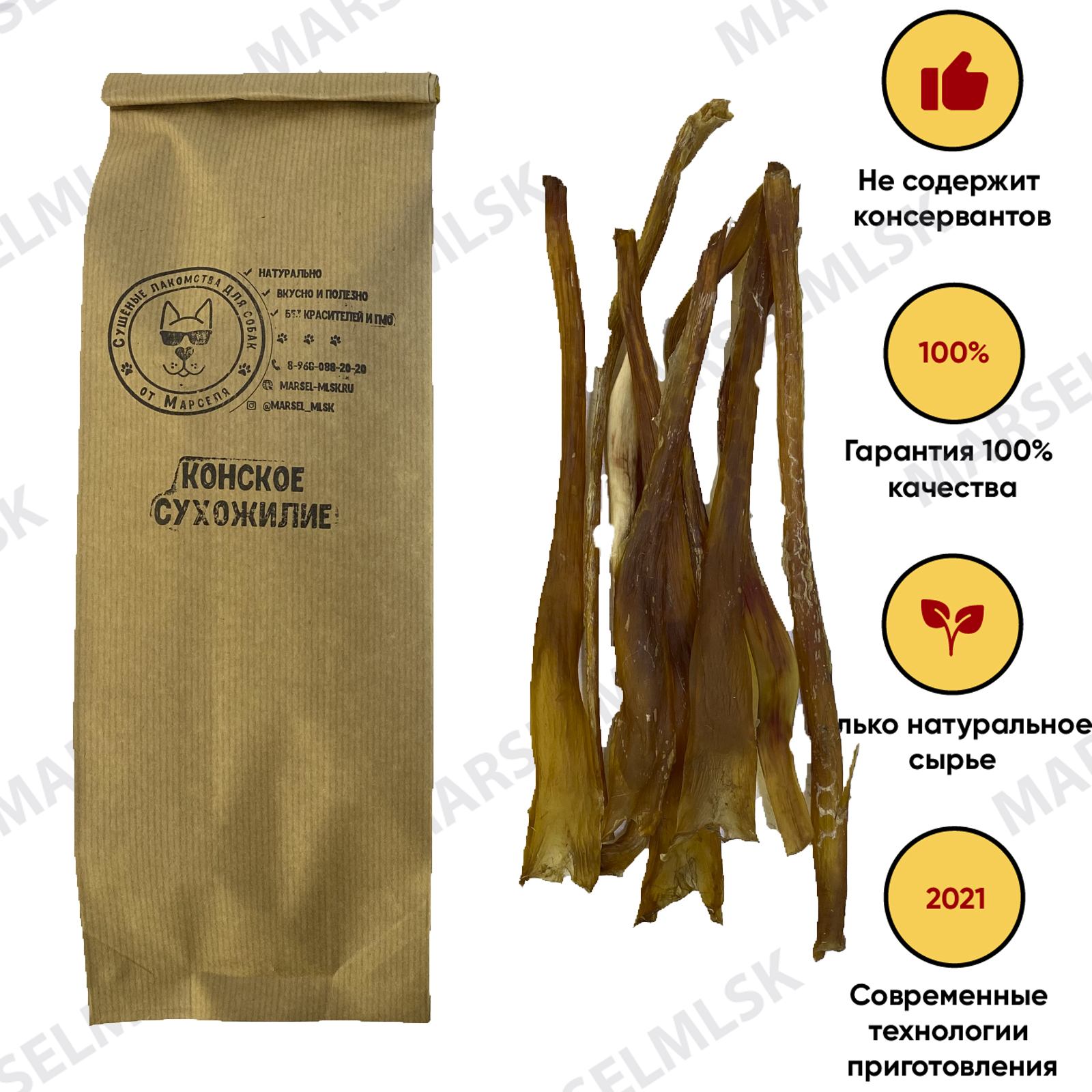 Конское сухожилие - ахиллесова жилка. Подходит для маленьких и средних пород, размер - до 30 см