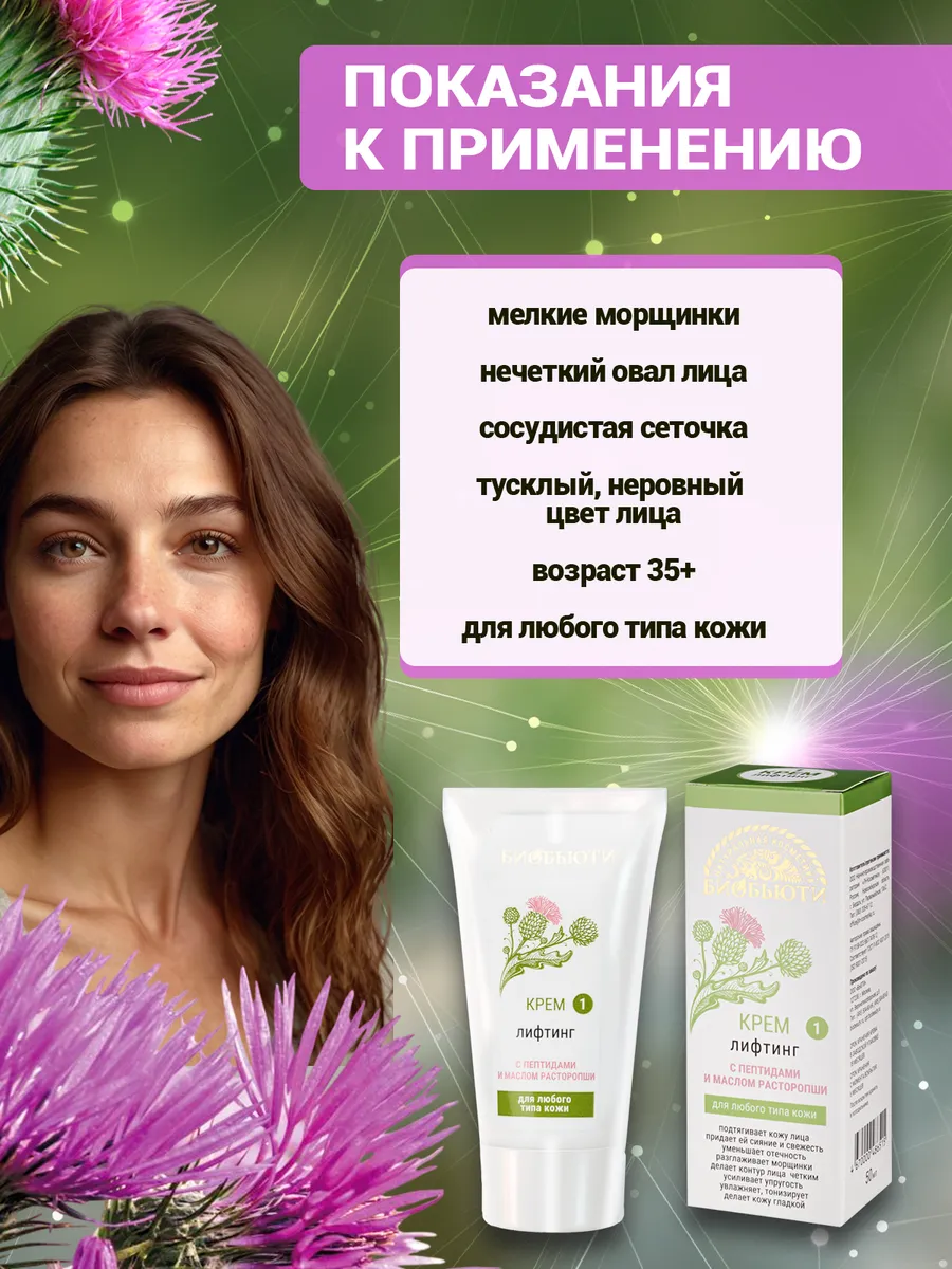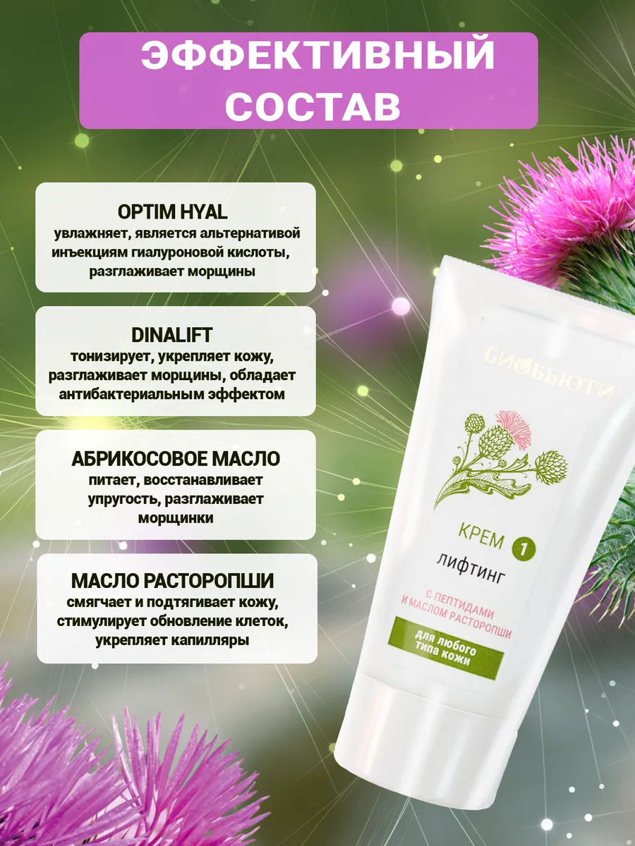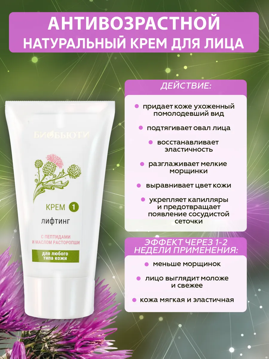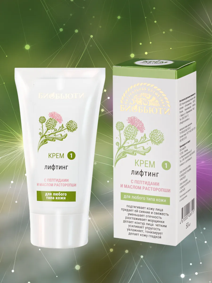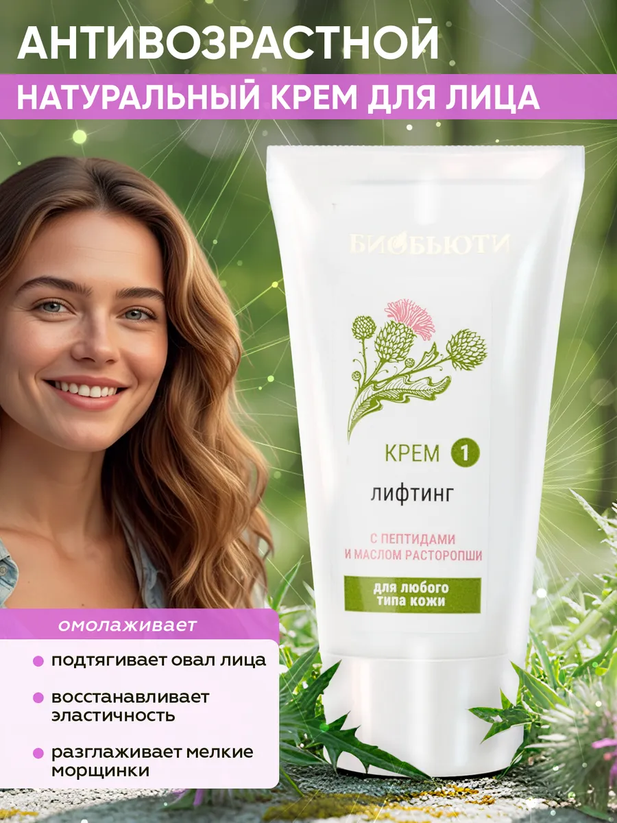 Органический крем-омоложение для лица от бренда натуральной косметики БиоБьюти "Лифтинг" с активами и маслом расторопши – это легкий гелевый антивозрастной крем для любого типа кожи, повышает ее упругость и эластичность, устраняет мелкие недостатки и признаки усталости. Способствует разглаживанию мелких морщинок и оказывает отличный лифтинг эффект.