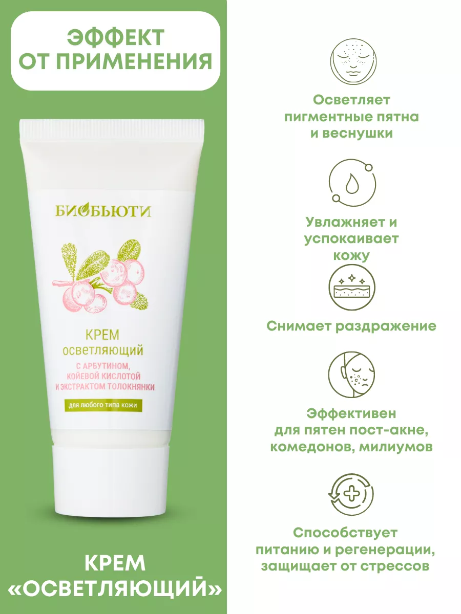 Органический крем для лица «Осветляющий» от бренда натуральной косметики Биобьюти не только осветляет, но и глубоко увлажняет кожу и ускоряет процесс регенерации. Этот профессиональный уходовый крем подходит для любого типа кожи как дневной и ночной и станет надежным помощником тем, кто страдает от пигментации, веснушек или проблемных участков на лице и его кожа нуждается в осветлении иОт пигментных пятен.увлажнении.
