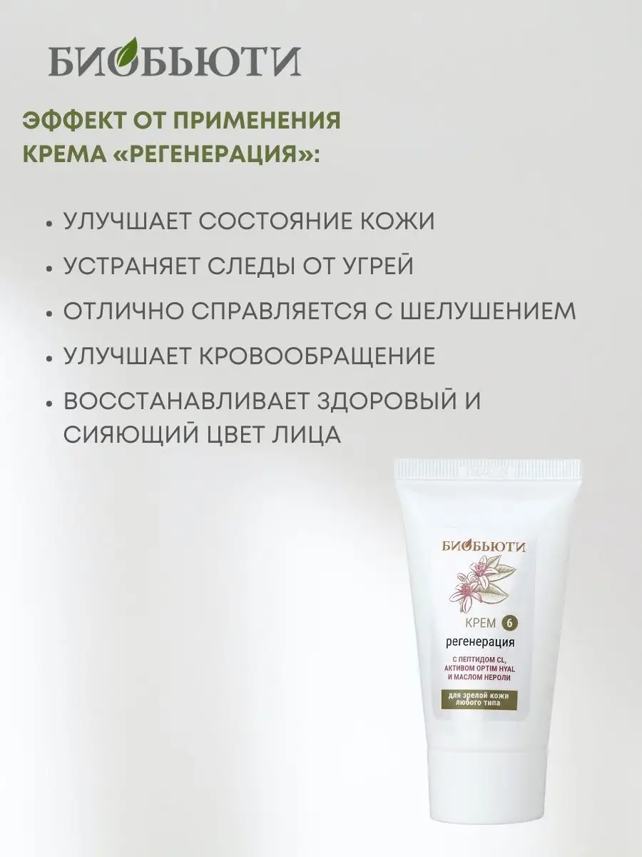 Органический заживляющий крем для кожи лица, шеи и декольте «Регенерация» от российского производителя БиоБьюти с Д-пантенолом и маслом виноградной косточки поможет вам выглядеть молодо и свежо. Этот легкий гелевый крем насытит кожу витаминами, простимулирует обновление клеток, сгладит следы рубцов и постакне, что приведет к улучшению цвета лица, а также за счет своих увлажняющих свойств справится с сухостью и шелушением. Кроме сухой кожи, крем может использоваться для любого типа, а за счет того, что обладает матирующим эффектом, прекрасно подойдет обладательницам жирной. Природный питательный состав натурального крема интенсивно насыщает кожу жирными кислотами омега-6 и омега-9, поэтому он прекрасен и в холодное время года, и когда Ваша кожа нуждается в хорошем питании. Если Вы искали крем против морщин или подтягивающий крем, то БиоБьюти «Регенерация» как раз то, что нужно. Он работает как лифтинг и оказывает активное омолаживающее действие на зрелую кожу и в том числе работает как крем от морщин под глазами . Это также и мужской крем, он прекрасно успокоит чувствительную кожу после бритья. Можно использовать как дневной и ночной восстанавливающий крем и для ежедневного ухода для кожи вокруг глаз.