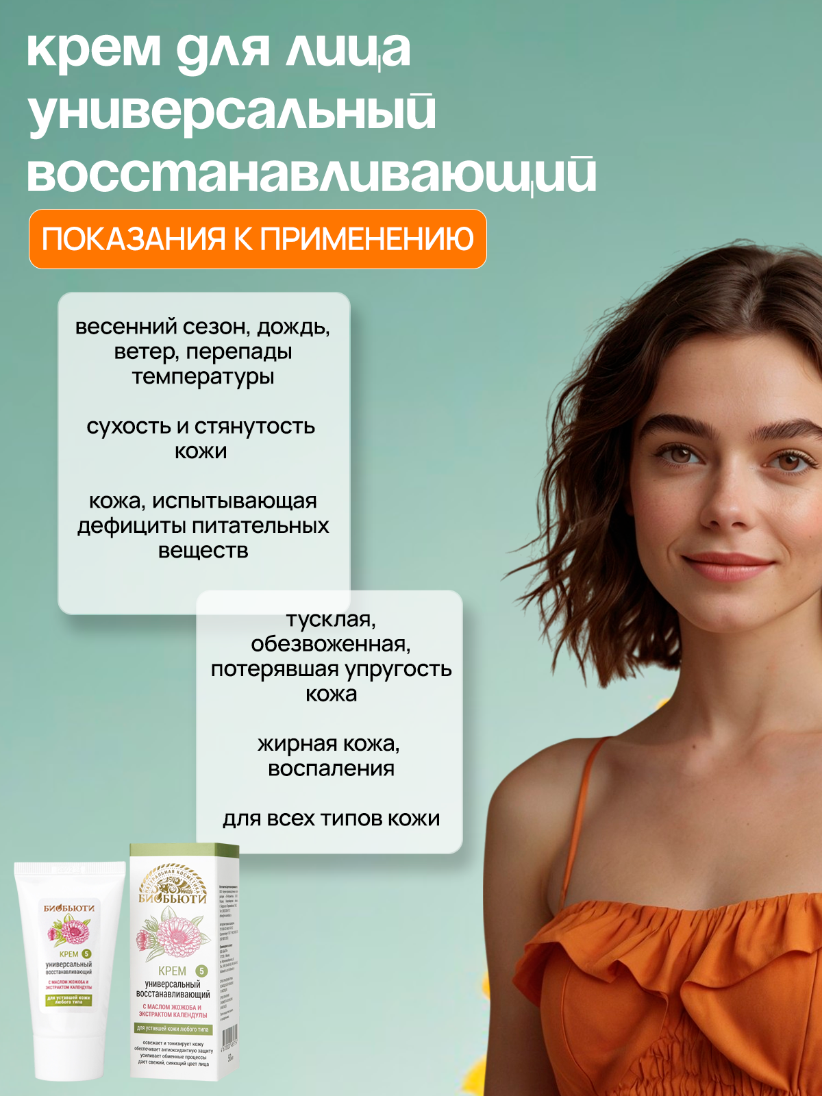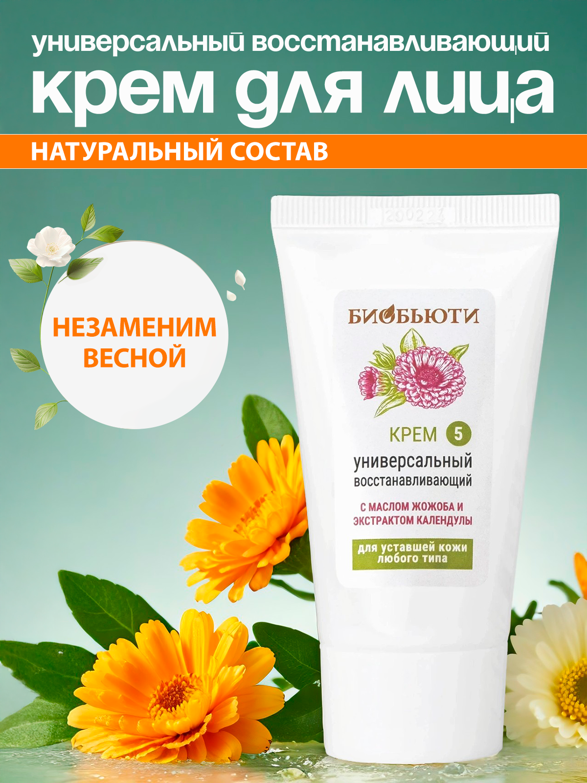 Крем от производителя натуральной косметики БиоБьюти «Универсальный восстанавливающий» для лица, шеи и декольте устранит вялость и усталость кожи, наполнит ее здоровьем и красотой.Можно наносить как дневной и ночной. Универсальный - подходит для мужчин. При ежедневном использовании возвращает коже упругость, тонизирует и питает ее, обладает разглаживающим действием, (возможно использовать как крем от морщин). Он подходит для кожи любого типа: питает и насыщает сухую кожу, нормализует работу сальных желез кожи с повышенной жирностью. Крем выравнивает цвет лица, устраняет воспаления, улучшает кровообращение. Подходит для ежедневного ухода, может использоваться перед нанесением макияжа - он быстро впитывается и создает защитный слой для кожи. Натуральные компоненты в составе способствуют омоложению кожи, насыщению ее витаминами. Масло жожоба способствует регенерации, активирует восстановление клеток кожи. Крем подарит коже антиоксидантную защиту, кровообращение улучшится и признаки усталости исчезнут.