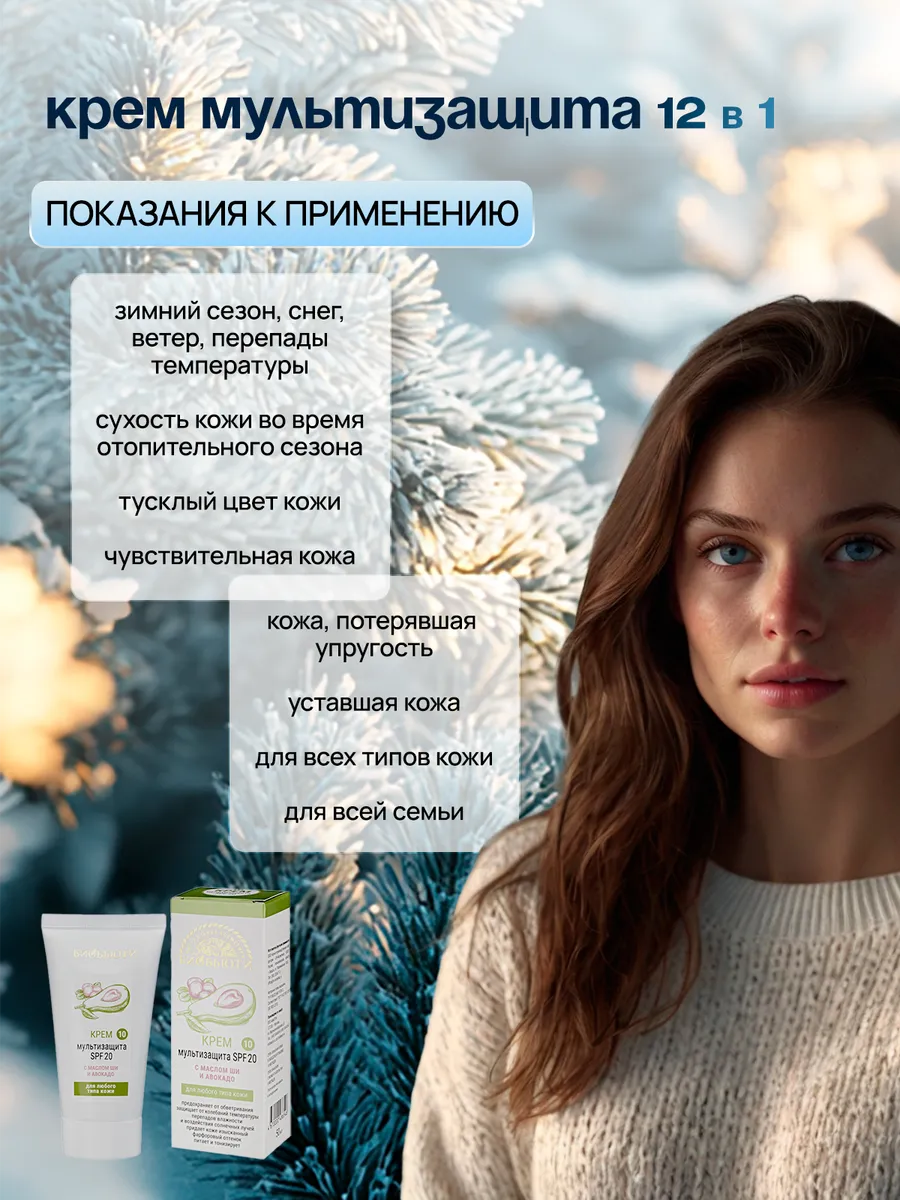 Нежный гелевый SPF-20 крем для кожи лица от бренда натуральной косметики БиоБьюти «Мультизащита» с маслом ши и авокадо.
