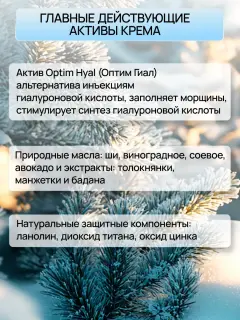 Снабжая глубокие слои кожи ценными полезными веществами, крем оставляет на её поверхности тончайшую воздухопроницаемую эластичную пленку, которая помогает коже удерживать влагу и защищает от проникновения токсичных веществ.