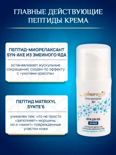 Антивозрастной крем для век с экстрактом цветов липы и с пептидами-миорелаксантами. Легкий и нежный омолаживающий крем для век на основе пептидов нового поколения.