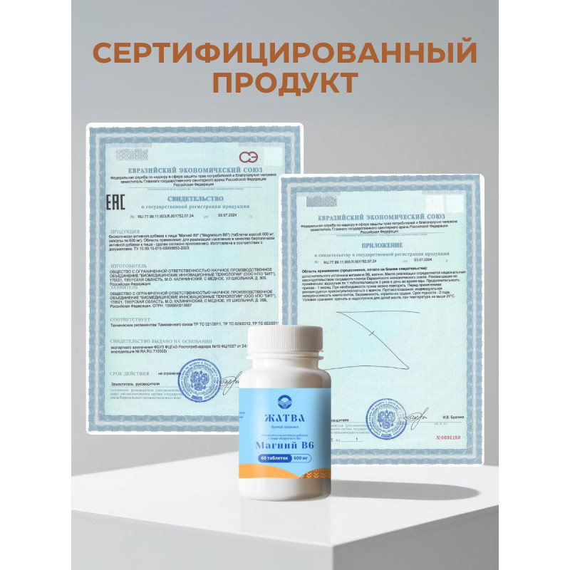 Магний В6 Витаминный комплекс для нервной системы БАД для здоровья женщин и мужчин, антистресс ЖАТВА 60 шт по 600 мг