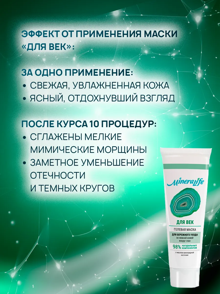 Маска для лица и глаз – это средство, разработанное с учетом потребностей кожи. Она предназначена для женщин, стремящихся поддерживать молодость и свежесть своей кожи. Формула маски позволяет эффективно бороться с признаками старения, увлажнять и успокаивать, а также улучшать внешний вид кожи вокруг глаз.