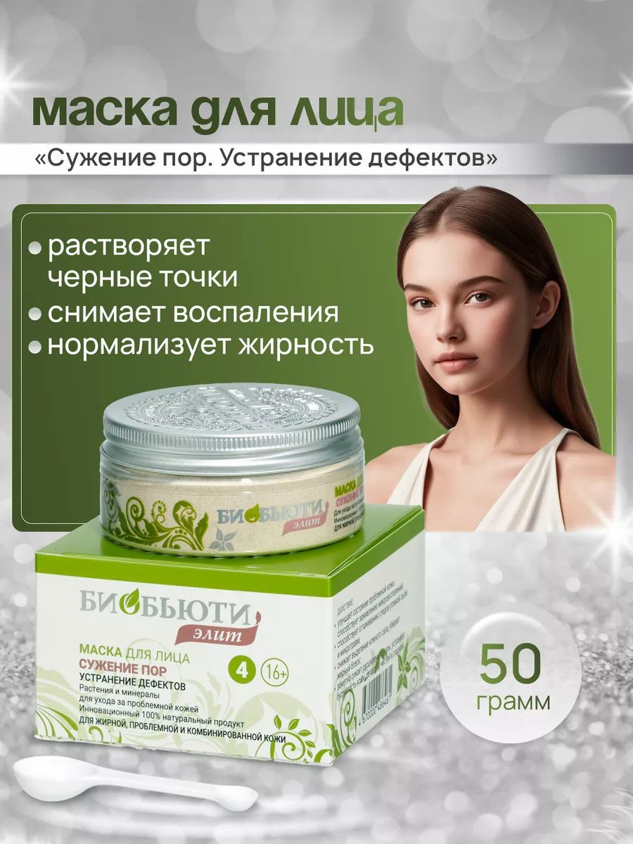 Mаска для лицa Элит №4 "CУЖЕНИЕ ПОР. УCТРАНЕНИЕ ДEФЕКТОВ"