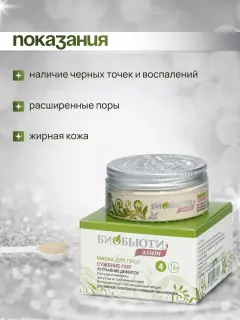 Интенсивный уход за проблемной кожей. 100% натуральный продукт. Действие маски в первую очередь направлено на нормализацию работы сальных и потовых желез у девушек и женщин, на лице у которых присутствуют угри, комедоны, акне или следы от них. Пользоваться рекомендуем с 16 лет всем, кто хочет в домашних условиях убрать черные точки, воспаления, сгладить инфильтраты от угрей и операций. Маска изготовлена только из натуральных компонентов, поэтому она подходит для людей, склонных к проявлению аллергических реакций. Овес молочной спелости в составе маски - это источник белков, жиров и аминокислот, необходимых для обменных процессов в клетках кожи. Минерал цеолит, входящий в состав маски, сохраняет полезные свойства компонентов и активирует их лечебное воздействие на кожу. Благодаря эфирному маслу бергамота, вы получите ароматерапевтический эффект, плюс улучшите цвет лица, повысите тонус кожи. Хранить при комнатной температуре в закрытой банке. Не допускать попадание влаги внутрь. Не тестируется на животных. Можно использовать во время беременности и кормлении грудью. Срок годности – 2 года. Эффект от использования маски: улучшает состояние проблемной кожи, способствует заживлению микровоспалений; способствует сглаживанию следов угревой сыпи и микротравм; снижает выделение кожного сала, убирает жирный блеск; заметно сужает расширенные поры, устраняет бугристость кожи, делает ее чистой и гладкой. При комплексном использовании маски с предварительным очищением Биочисткой или Минеральным гелем процедура дает больший эффект, чем без них.