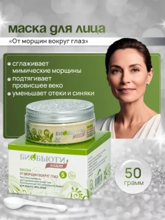 Интенсивный уход за контуром вокруг глаз. Маска «От морщин вокруг глаз» предназначена для ухода за чувствительной кожей нижнего и верхнего века. 100% натуральный продукт. Рекомендовано применять с 26 лет. Содержит мoдифицирoвaнный прирoдный цeoлит, обогащенный ионами меди, цинка, калия и магния. Овес молочной спелости – сильнейший биологически активный агент, дающий коже омоложение без ботокса, эффект лифтинга и увлажнения. Он замедляет апоптоз – естественный процесс гибели клеток. Благодаря этому компоненту продлевается жизнь клеток и активируется процесс их обновления. Овсяные отруби являются источником кремния и магния, которые способствуют лифтингу и укрепляют тонкую кожу. Многочисленные травы и растения в составе маски успокаивают, снимают отечность, питают и осветляют кожу вокруг глаз. Благодаря эфирным маслам чайного дерева и ромашки с нежным ароматом, вы получите еще и ароматерапевтический эффект. Регулярное использование маски способствует осветлению и омоложению кожи вокруг глаз, устранению морщинок, повышению эластичных свойств тонкой кожи век. При комплексном использовании маски с предварительным очищением Биочисткой процедура сопоставима с радикальными косметическими процедурами: блефаропластикой и инъекции филлерами. Хранить при комнатной температуре в закрытой банке. Не допускать попадание влаги внутрь. Можно использовать во время беременности и кормлении грудью. Для получения заметного и стойкого эффекта омоложения и лифтинга рекомендуется проводить ежедневные процедуры по 10-15 минут в течение 30 дней, второй месяц – через день, третий месяц – через два дня. Для поддержания достигнутого эффекта по истечении этого срока рекомендуется проводить процедуры не реже двух раз в неделю. Эффект после одной процедуры сохраняется 2-3 дня, а после окончания полного курса поддерживается не менее полугода.