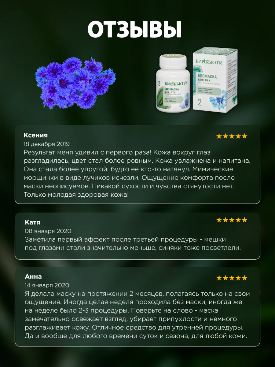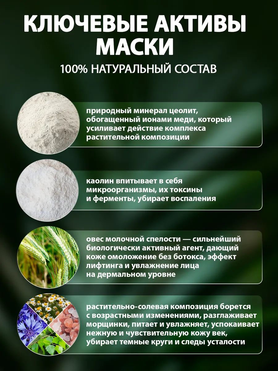 маска для лица и глаз – это средство, разработанное с учетом потребностей кожи. Она предназначена для женщин, стремящихся поддерживать молодость и свежесть своей кожи. Формула маски позволяет эффективно бороться с признаками старения, увлажнять и успокаивать, а также улучшать внешний вид кожи вокруг глаз.