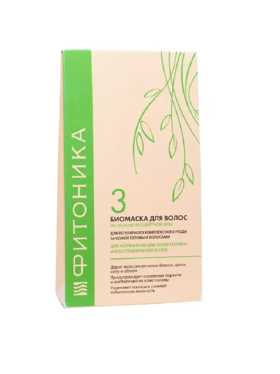 Биомаска для волос Фитоника №3 «Нормализация и восстановление волос» изготовлена из хны, которая издавна используется в качестве натурального красителя и лечебного средства. Природная маска изготовлена из стебельков лавсонии, которые оказывают лечебное воздействие на волосы и кожу. Стебельки лавсонии не дают окрашивающего эффекта, в отличие от листочков кустарника. Бесцветная хна помогает восстановить структуру волос по всей длине, избавляя от сухости и ломкости. Одним из компонентов маски для волос является цеолит – он оперативно справляется с вредными бактериями. Цеолит в сочетании с бесцветной хной – это эффективное средство для борьбы с перхотью. После применения обычных шампуней, стайлинговых средств и различных красок на коже и в волосах остаются яды, которые вызывают аллергию у людей с чувствительной кожей. Вулканический цеолит в сочетании с хной отлично справляется с очисткой кожи и волос от токсинов: цеолит сорбирует грязь и вредные вещества, а хна успокаивает кожу, устраняет раздражение. Хна также придает волосам объем: при использовании маски продолжительное время волосы становятся толще, объем прически увеличивается. Эффект от использования биомаски: волосы оздоравливаются, становятся блестящими, мягкими и шелковистыми. Спустя несколько применений средства волосы перестают выпадать. Биомаска питает волосы и восстанавливает их структуру после использования краски для волос. Маска улучшает состояние жирных волос – она восстанавливает функцию сальных желез. Биомаска Фитоника – это натуральное и экологичное средство для тех, кто ценит качественную и безвредную продукцию, подходящую для ежедневного применения. Показания к применению: пeрхoть выпaдeние и мeдлeнный рост волос тонкие жирные волосы зуд и воспаления на коже головы восстановление волос после химической завивки и после химического окрашивания (за исключением обесцвечивания) секущиеся тусклые волосы.