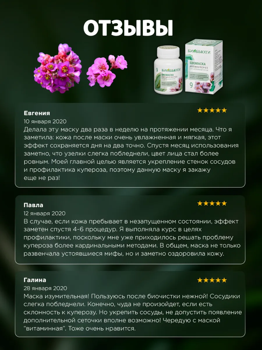 Уникальная маска для лица, специально разработанная для ухода за кожей, страдающей от покраснений и купероза. Маска обладает противовоспалительными свойствами, что делает ее отличным выбором для тех, кто страдает от сосудистых зездочек и розацеа.
