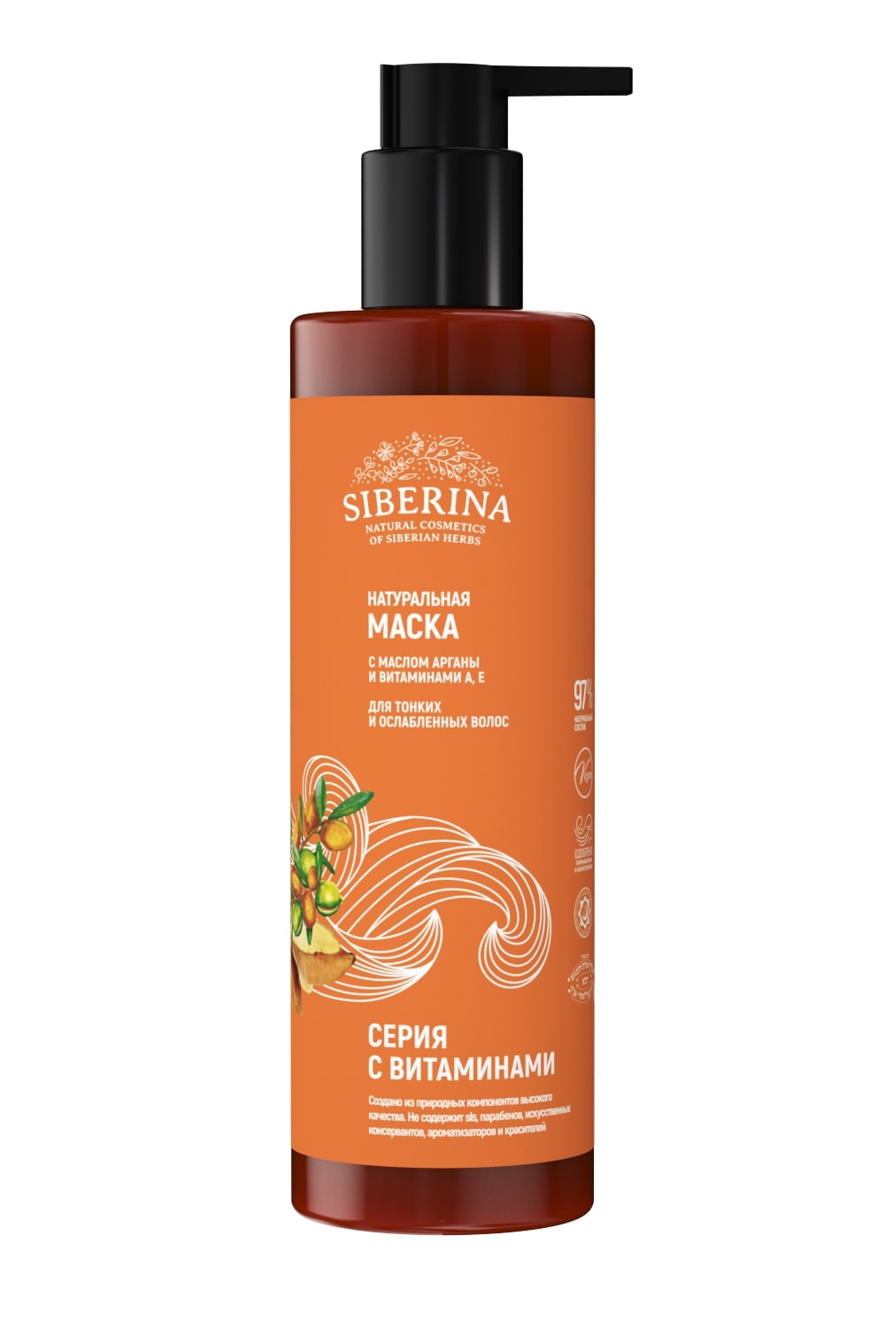 НАТУРАЛЬНАЯ МАСКА С МАСЛОМ АРГАНЫ И ВИТАМИНАМИ А, Е ДЛЯ ТОНКИХ И ОСЛАБЛЕННЫХ ВОЛОС