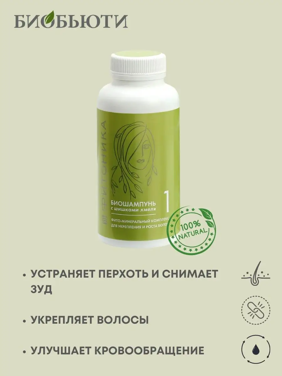 Биошампунь «Фитоника» № 1 «С шишками хмеля» - сухой шампунь, изготовленный из вулканических минералов (цеолитов), солей и полезных растений. Натуральный шампунь осуществляет активное воздействие на клетки кожи за счет наличия минералов в составе данного средства.