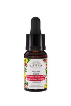 Ухоженные ногти – главная «визитная карточка» каждой женщины. Сохранить её красивый вид поможет средство для ухода за ногтями от Siberina. Масло специально разработано для ломких, поврежденных ногтей и сухой кутикулы. Отлично питает и увлажняет кутикулу, придавая безупречный внешний вид. Способствует смягчению, росту и восстановлению ногтевой пластины, создавая защитный питательный слой.
