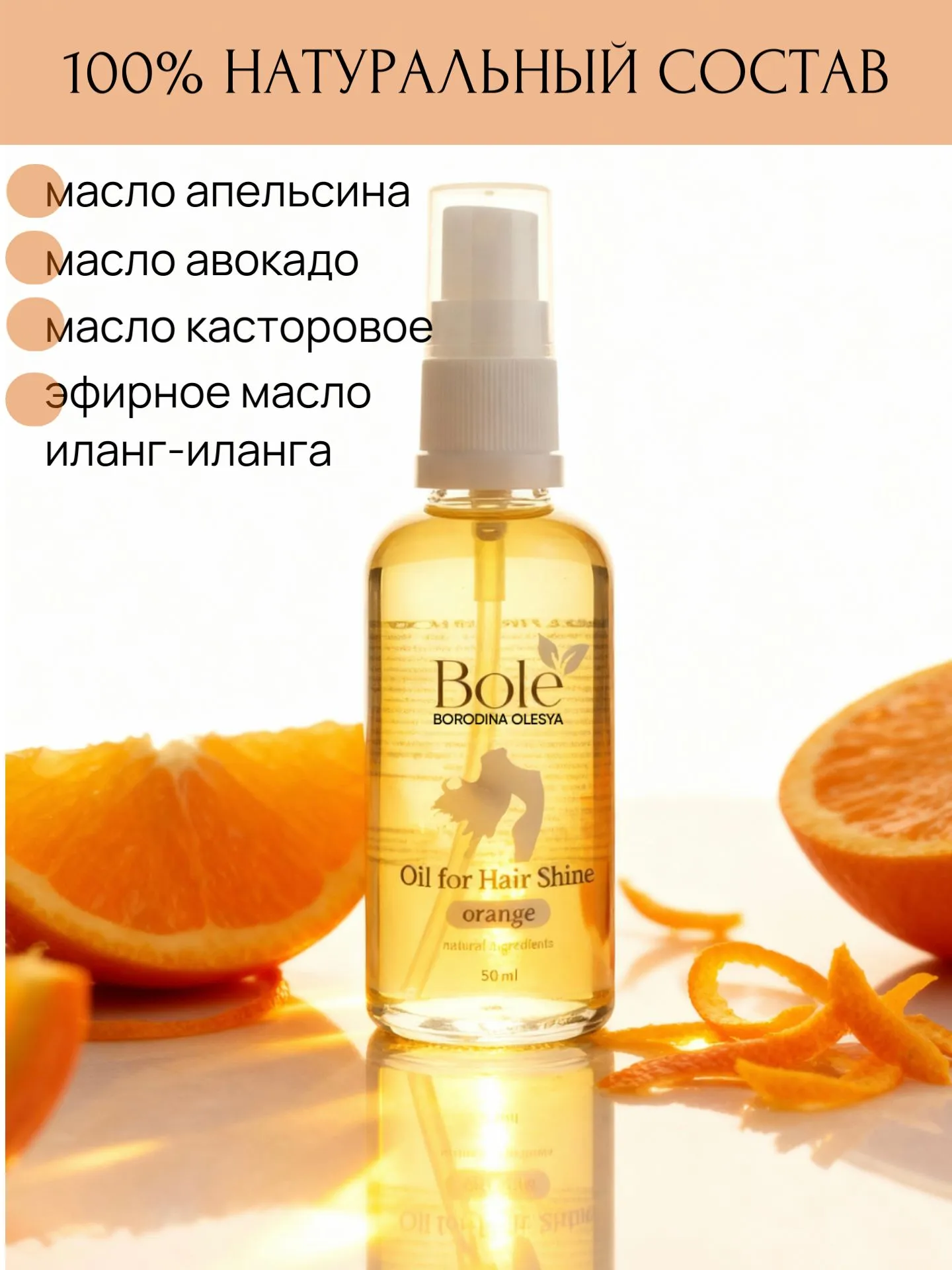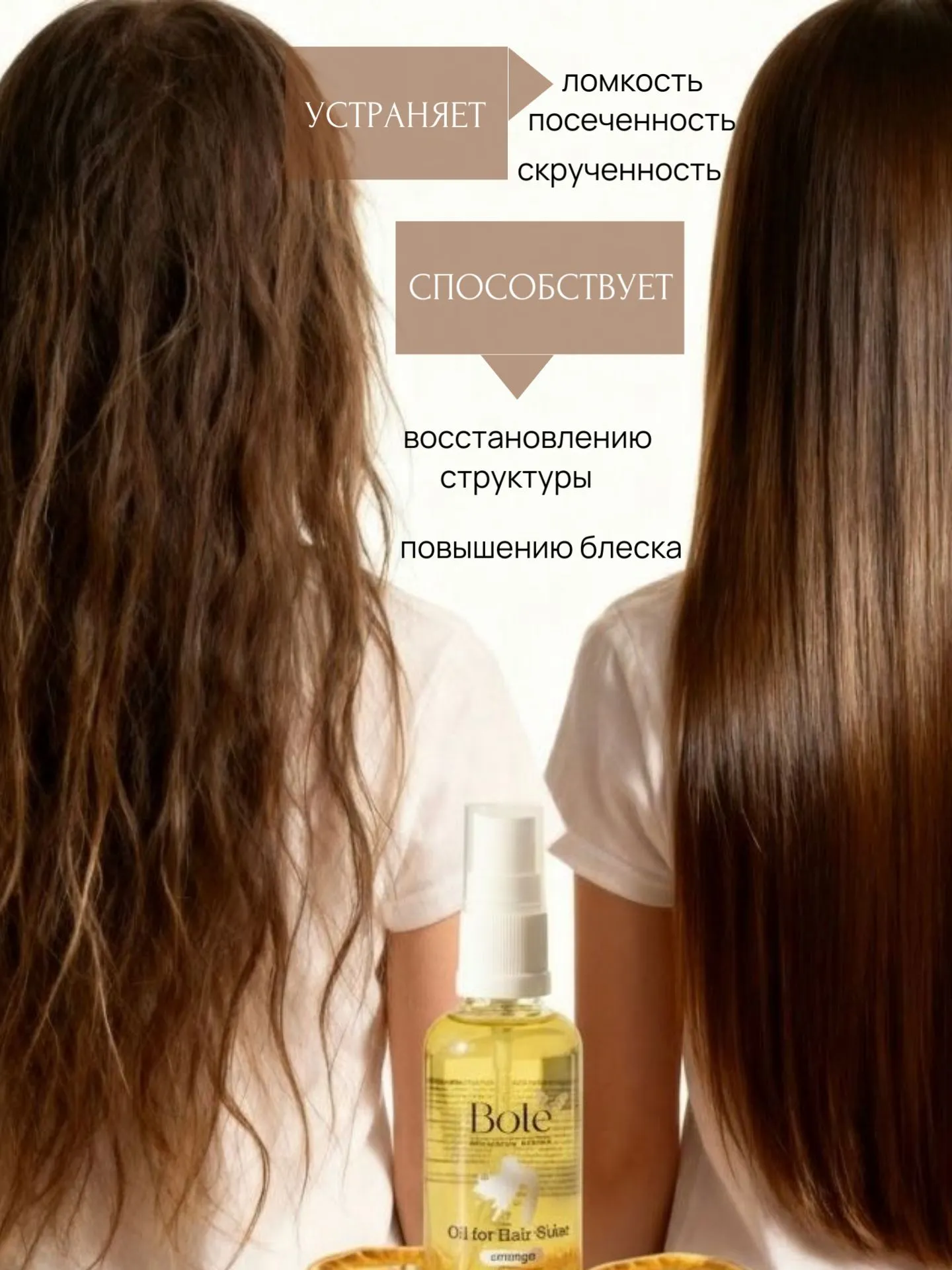Масло-флюид для роста волос bole, натуральный состав. Против ломкости, для блеска.