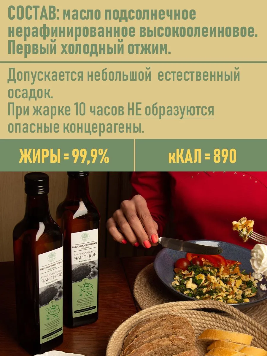 Масло подсолнечное высокоолеиновое холодного отжима НАБОР 1000 мл. 2 шт по 500 мл Краснодарское элитноеМасло подсолнечное высокоолеиновое Краснодарское элитное стекло
