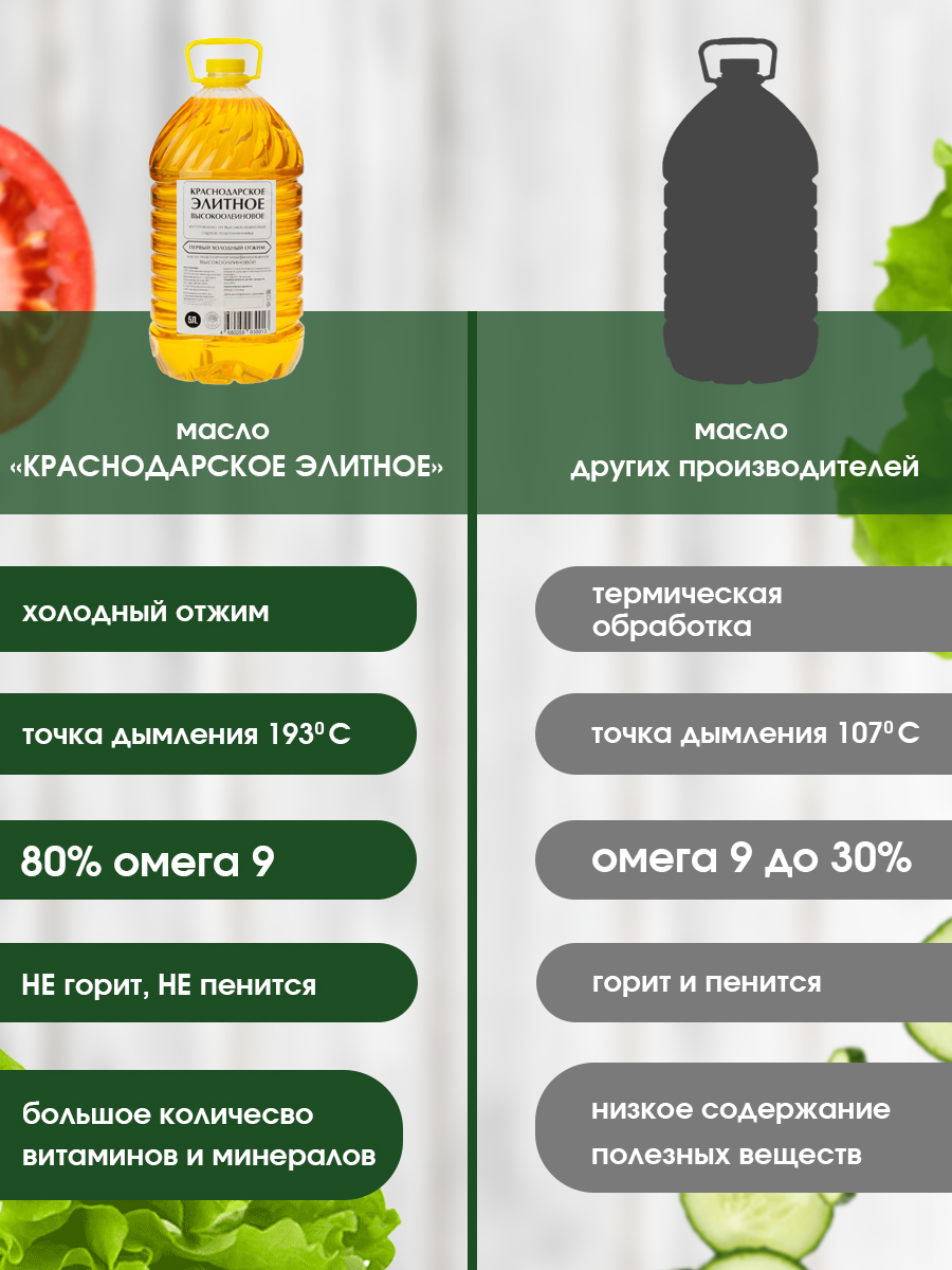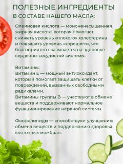 Масло холодного отжима с высоким содержанием олеиновой жирной кислоты (более 80%).