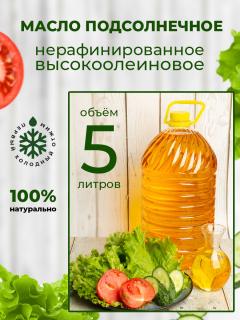 Масло подсолнечное высокоолеиновое нерафинированное холодный отжим ПЭТ 5 л Краснодарское Элитное